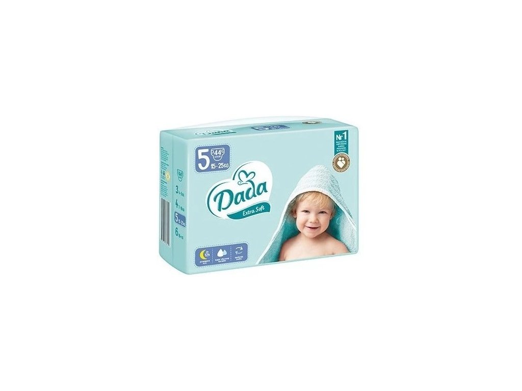 Dětské jednorázové pleny Dada Extra Soft 5 jsou pro děti od 15 kg do 25 kg. Balení obsahuje 42 ks.