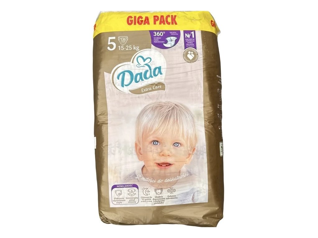 Dětské jednorázové pleny Dada Extra Care 5 GIGA PACK jsou pro děti od 5 kg do 15 kg. Balení obsahuje 136 ks